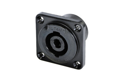 Neutrik$6.85| /4 pole chassis connector, black D-size flange, countersunk thru holes, 3/16" flat tabsThe speakON panel mount connectors are the standard chassis c...