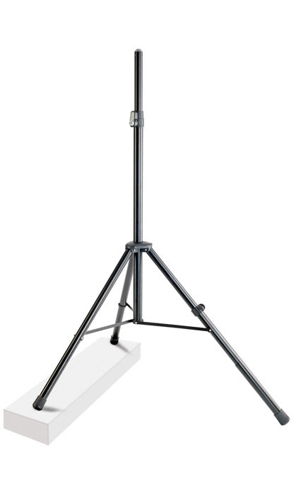 Adapt your speaker stand to the respective stage, studio or practice room using this leveling leg - a useful supplement for the following Konig & Meyer speaker stands: 21300-009-55, 21302-009-55, 21435-009-55, 21436-009-55, 21460-009-55, 21460-009-76, 21460-009-81, 21463-000-55, 21467-000-55 and 24630-009-55. With the help of this adapter you can easily level uneven surfaces, stairs, steps or sloped surfaces. The leveling leg is attached to one of the speaker feet and set using a clamping bracket. The required leveling length is variable and allows a height adjustment of max. 200 mm. If the surface is even, you simply leave the adapter in the initial position on the speaker foot.