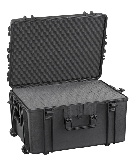 Introducing the MAX620H340TR waterproof case, equipped with wheels and an extendable handle. Internal dimensions: 620 x 460 x 340mm.