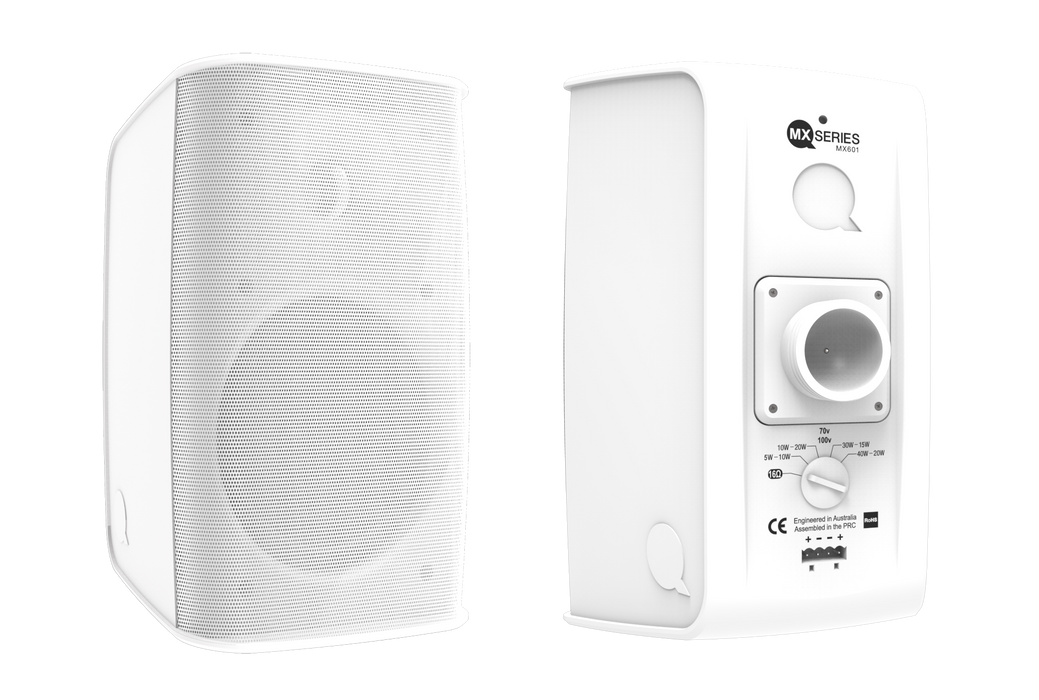 The objective for the Engineers of the MX Series Indoor/Outdoor line-up was to take the compact wall mount speaker to a new standard of performance. This meant consulting with a wide range of venue and public space designers to determine what is needed in a modern designed architectural space. To achieve the desired outcomes a completely new approach to the design was required, both technically for the audio performance, and in developing new manufacturing techniques. The result is a refined appearance that fits visually into any environment, reproduces Hi-Fi quality music and speech; and is easy to install.